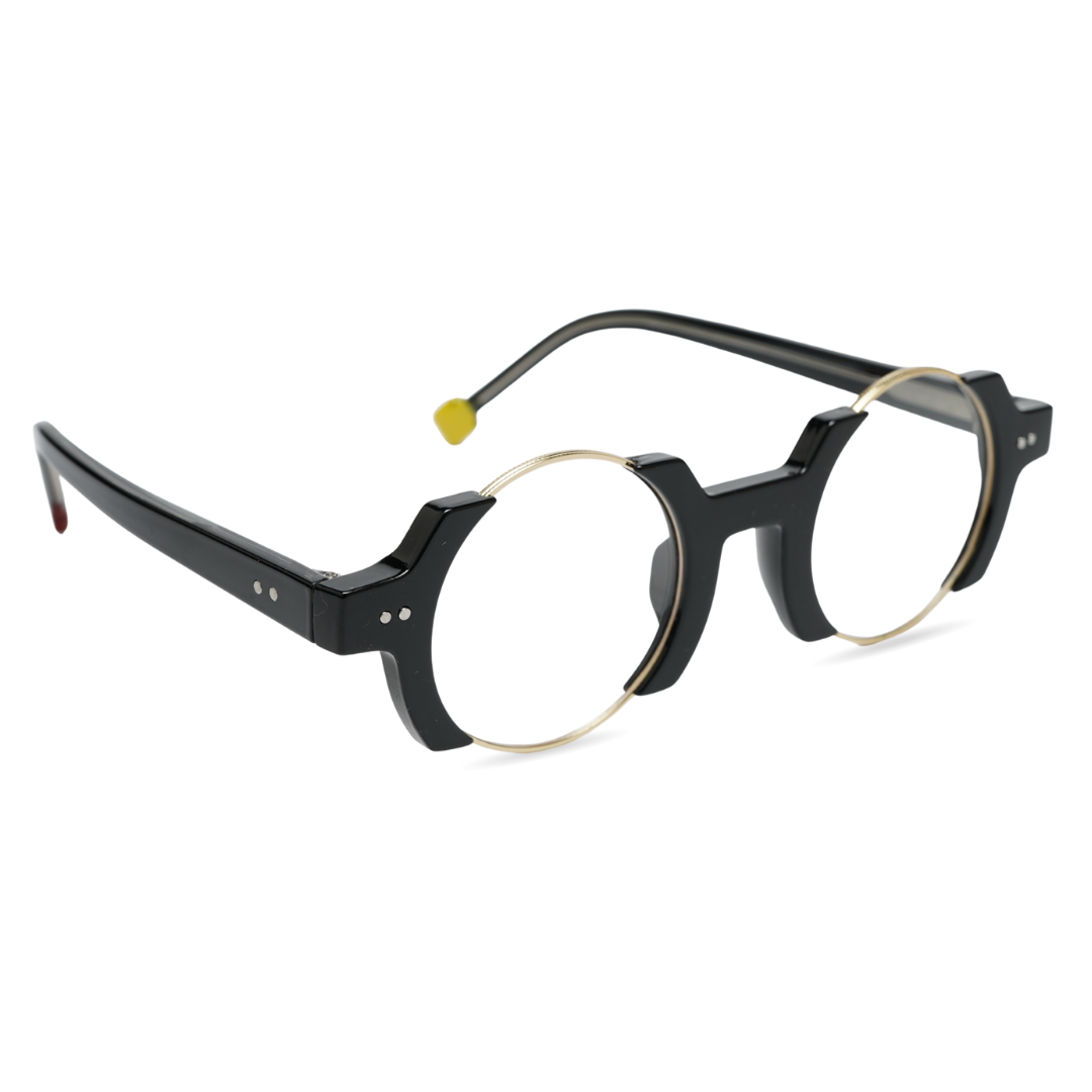 Description-Axis is not just eyewear — it's an attitude. With industrial-inspired geometry, this statement frame merges art and architecture into a single silhouette. The bold black cutout design contrasts with sleek golden wire rims, making it both futuristic and retro. Designed for those who defy conformity, Axis turns every glance into a conversation starter.